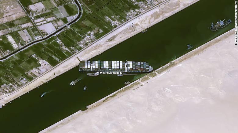 Ajo ka ngecur në kanalin e ngushtë artificial që ndanë kontinentin e Afrikës me ishullin Sinajsk. Anija është në pronësi të kompanisë japoneze Shoei Kisen që ka bllokuar trafikun ujor në kanal – duke i lënë në pritje dhjetëra anije tjera në Mesdhe dhe Detin e Kuq. /Telegrafi/