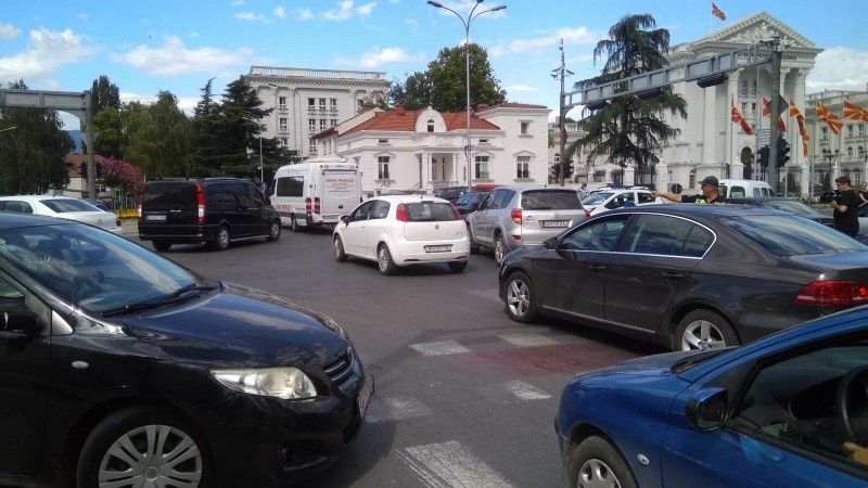 Dhjetëra qytetarë me makinat e tyre bllokuan komunikacionin para objektit të Qeverisë së Maqedonisë, duke shkaktuar nervozizëm dhe kaos tek qytetarët tjerë.