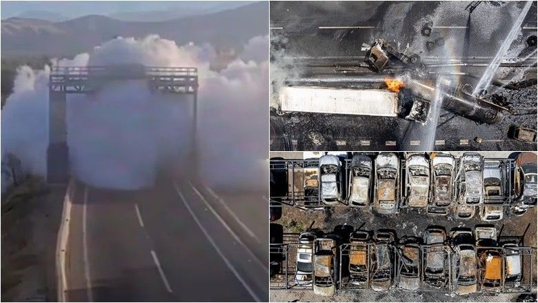 Pamjet në mediat sociale treguan flakë që valëviteshin në vendin e shpërthimit, ndërsa një re gazi gri, si tym, u përhap në të gjithë autostradën brenda sekondave.