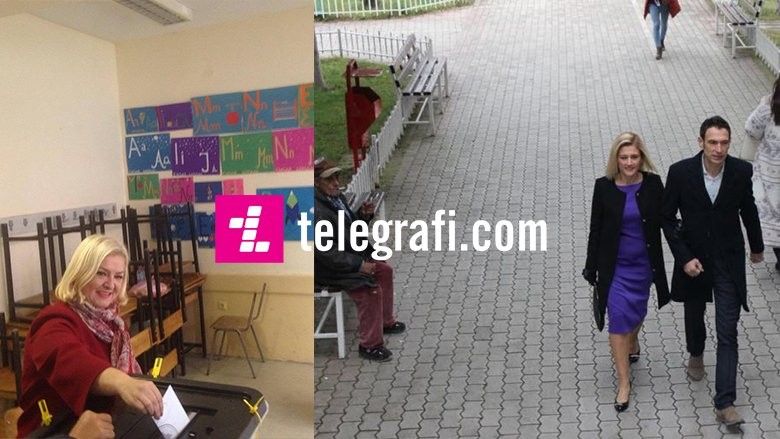 Kusari-Lila për në vendvotim, u shoqërua nga bashkëshorti i saj Agron Lila. /Telegrafi/