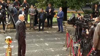 Kryeministri Edi Rama ndodhet para pallatit të Brigadave, aty ku po pret liderët e Ballkanit Perëndimor, për samitin “Plani i Rritjes, rruga jonë në BE”, që do të mbahet në Tiranë.