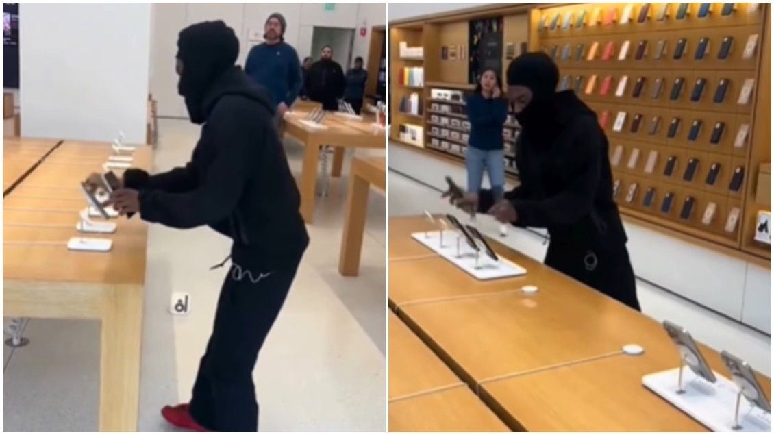 Do të tronditeni me këto pamje - hajduti 'mbushi' pantallonat me dhjetëra iPhone nga një dyqan i Apple, largohet pa u ndaluar nga askush