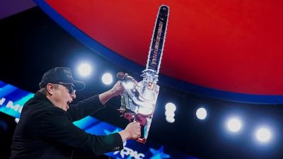 "Kjo është sharra elektrike për burokracinë", tha Musk, duke mbajtur mjetin mbi kokën e tij në Konferencën e Veprimit Politik Konservator në National Harbor, Maryland, në shkurt.