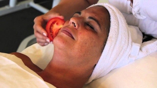 Prite domaten në gjysmë dhe bëj me të masazh duke e qarkulluar lehtë në fytyrë me lëvizje të vogla. Pastaj lëre të thahet dhe shpëlaje fytyrën me ujë të vakët.