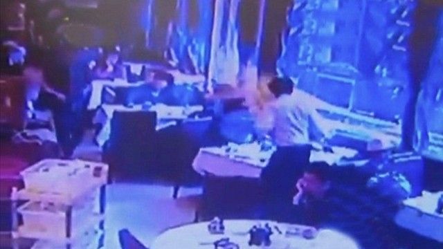 Në aksidentin që ka ndodhur në qytetin Guangzhou të Provincës Guangdong të Kinës, kamerieri megjithatë është vënë në ndihmë.