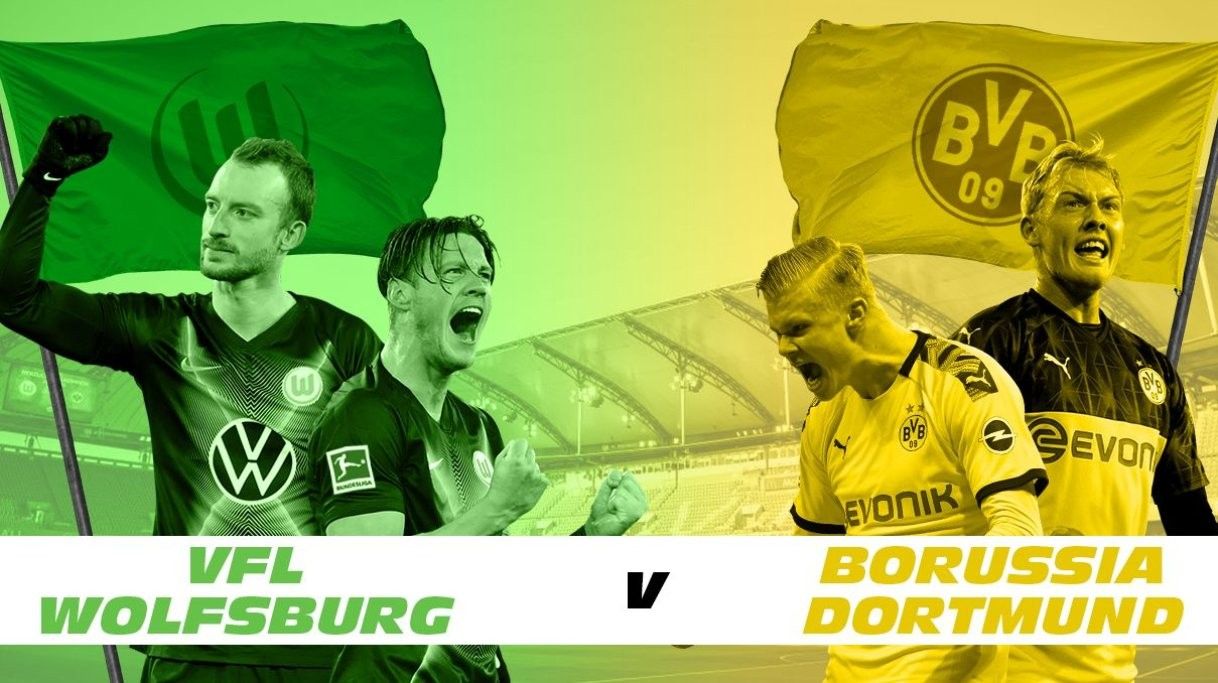 Wolfsburg: Casteels; Steffen, Weghorst, Mehmedi, Roussillon, Mbabu, Pongracic, Schlager, Brooks, Arnold, GinczekDortmund: Burki; Piszcek, Hummels, Akanji; Hakimi, Dahoud, Delaney, Guerreiro; Brand, Haaland, Hazard; /Telegrafi/