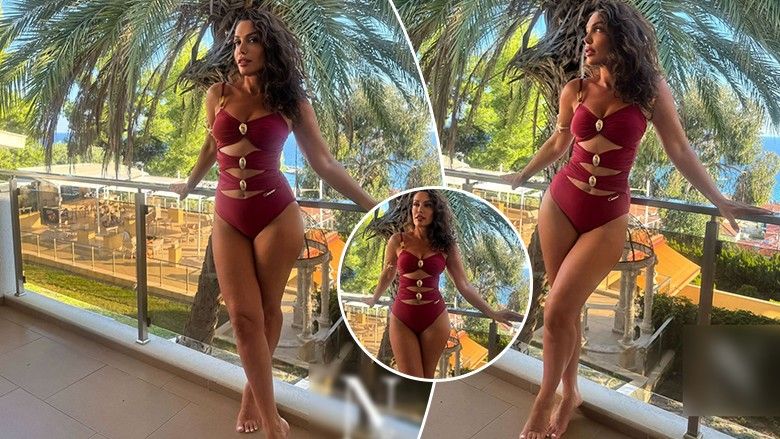 Përveç kostumit të saj tërheqës, Drenusha është duke shijuar ditët e saj në një terren të bukur, me një palmë që dallohet pas saj dhe me një pamje të qetë të detit që duket nga balkon.