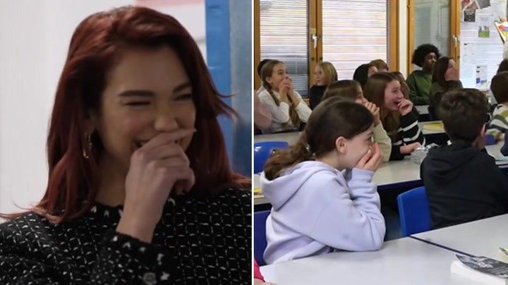 E shoqëruar nga Greg James, prezantuesi i njohur i BBC Radio 1, Dua kabefasuar nxënësit e klasës së gjashtë, të cilët nuk mundën të fshehin dot emocionet dhe gëzimin e tyre, shkruan The Independent.