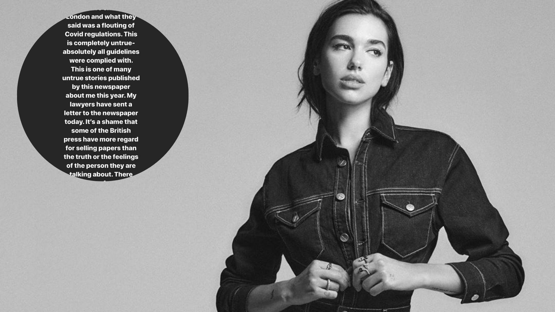 Më tutje, Dua vazhdoi: Kjo është plotësisht e pavërtetë. Kjo është një ndër artikujt e pavërtetë që kjo gazetë ka bërë për mua këtë vit".