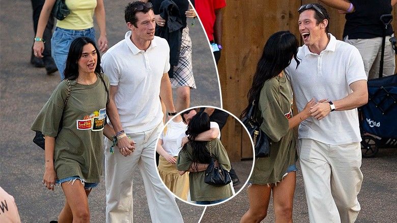 Dua kishte zgjedhur një pamje të thjeshtë, por shumë “në modë” për festivalin – veshur me një palë pantallona të shkurtra xhins dhe një bluzë ngjyrë kaki, ndërsa mbi supe mbante një çantë të markës "Chanel". Callum ishte i veshur i tëri me të bardha, me një bluzë polo dhe pantallona chino, të kombinuara me çizme ngjyrë kafe.