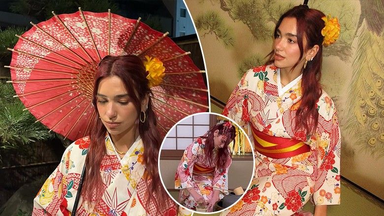 Dua Lipa dukej mahnitëse në një veshje tradicionale japoneze gjatë vizitës së saj në Tokio të hënën.