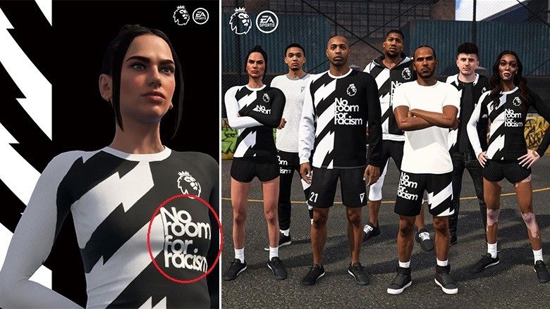 Dua Lipa në video-lojën FIFA 21 të PlayStation me mesazhin "Nuk ka vend për racizëm", krahas Lewis Hamilton e Anthony Joshuas