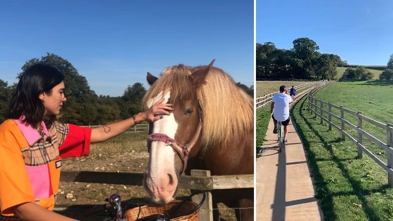 Përmes rrjeteve sociale, Dua ka publikuar momente nga shëtitjet me të dashurin me biçikleta rrugëve të fshatit.