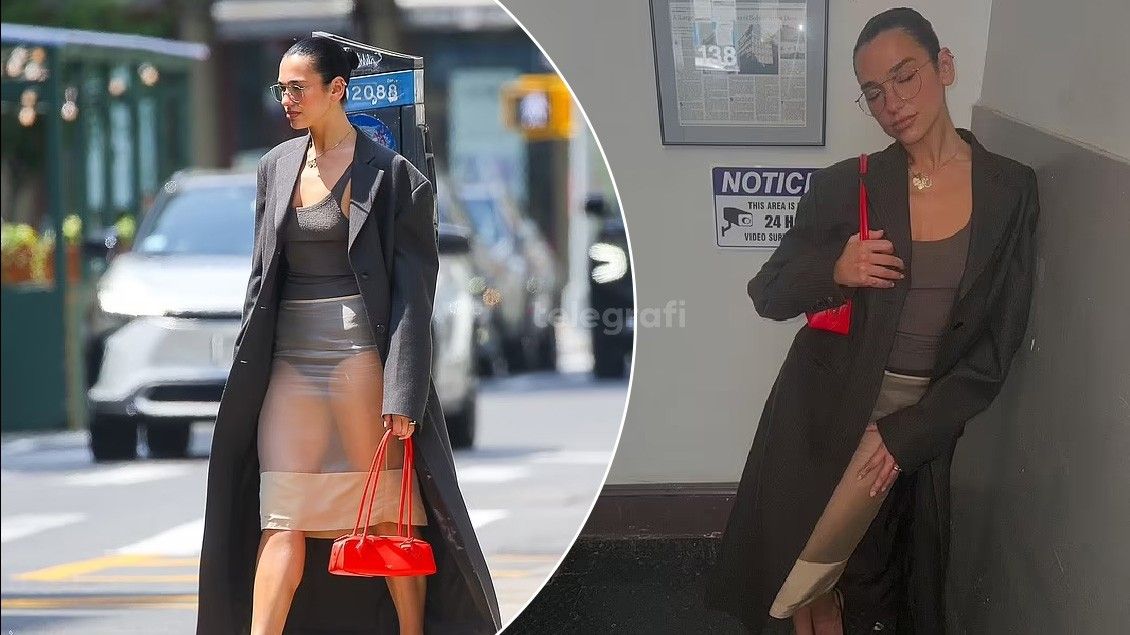 Dua Lipa tërhoqi vëmendjen në Manhattan gjatë një takimi me të fejuarin Callum Turner, duke u shfaqur me një fund transparent nudo mbi një kostum të zi elegant.