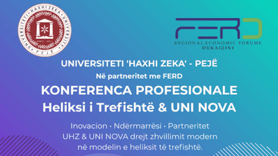 Universiteti “Haxhi Zeka” në Pejë (UHZ), në partneritet me FERD – Forumin Ekonomik Rajonal të Dukagjinit, i mbështetur edhe nga projekti SHER, është në fazën përfundimtare të përgatitjes së Konferencës së Tretë Shkencore dhe Profesionale, e cila pritet të mbahet në fillim të muajit dhjetor 2025. Kjo konferencë vjen si vazhdimësi e një cikli profesional të iniciuar nga UHZ dhe FERD, i cili synon të ndërtojë një kulturë të re bashkëpunimi midis akademisë, sektorit privat dhe institucioneve shtetërore, duke avancuar kështu konceptin modern të heliksit të trefishtë (Triple Helix) si model funksional për zhvillim rajonal, inovacion dhe transformim socio-ekonomik.