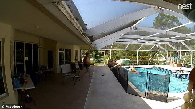 Një baba në Florida të SHBA-së është duartrokitur nga shumë njerëz që kanë pasur rastin ta shohin videon, ku shihet se si reagon me shpejtësi duke kërcyer rrethojën mbi një metra të lartë për t'u hedhur në pishinë për ta shpëtuar djalin njëvjeçar që rrezikohej të mbytej në ujë.