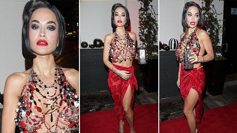 Rita Ora, 31 vjeçe, u shndërrua në Lisle Von Rhuman nga filmi “Death Becomes Her”, e veshur me një gjerdan me xhevahir të hollësishëm në vend të një bluze dhe një pareo të kuqe saten si fund.