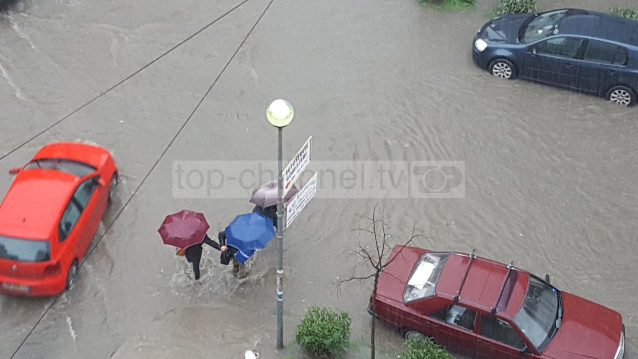 Nga sa mund të dallohet edhe nga fotot e mëposhtme uji që ka kaluar mbi nivelin e trotuareve ka vënë në vështirësi lëvizjeje si kalimtarët, ashtu edhe makinat. /Tch/Telegrafi/