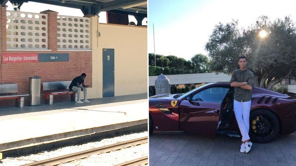 Vijnë nga i njëjti kampionat, por jetojnë në botë të ndryshme. Cristiano Ronaldo që njihet për veturat e tij superluksoze dhe Djene Dakonam që është bërë i njohur për udhëtimin e tij me tren.