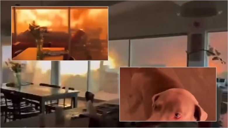 Disa pamje të publikuara në internet tregojnë dy burra dhe qenin e tyre të bllokuar ndërsa zjarret rrethuan pronën e tyre në Los Anxhelos.