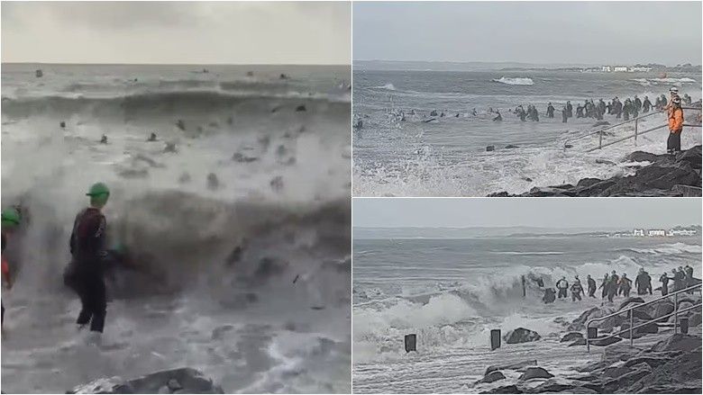 Pamjet nga vendi i ngjarjes treguan qindra garues që përpiqeshin të kalonin valën për fillimin e notit 1.9 kilometrash.