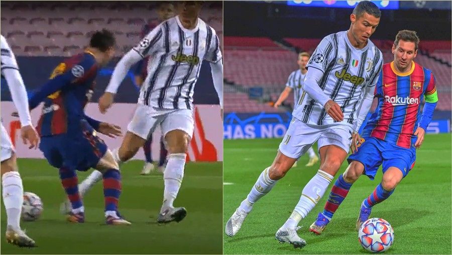 Momentin e parë të duelit direkt e fitoi Messi. Ndërkohë që ndodhej në gjysmën e Juves, argjentinasi shmangu një ndërhyrje të Arthur, derisa CR7 po kthej me shpejtësi dhe u nis në drejtim të topit, por me një lëvizje mjeshtërore, Leo e nxori nga loja.