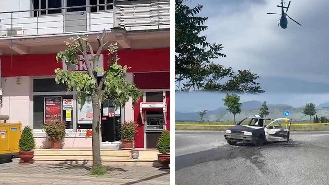 Ndërkohë, në dalje të Koplikut në drejtim të Bajzës është gjetur një automjet i djegur me të cilën dyshohet se është kryer grabitja e bankës.
