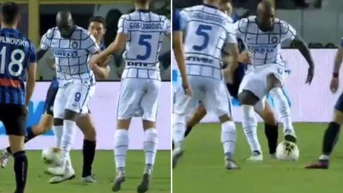 Lukaku shumë shpejtë arriti të kontrollonte topin dhe la të shtangur Papu Gomezin dhe Marten de Roon me një lëvizje anash.