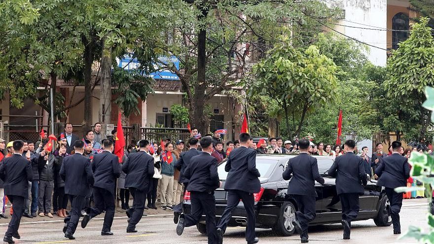 Tepihu i kuq ishte shtrirë për liderin e Koresë së Veriut, kurse pasi u përshëndet me zyrtarët vietnamez u fut në limuzinë për të vazhduar rrugëtimin për në Hanoi, ku dhjetëra truporja kishin rrethuar limuzinën e tij të markës Mercedes pas të cilës vraponin.