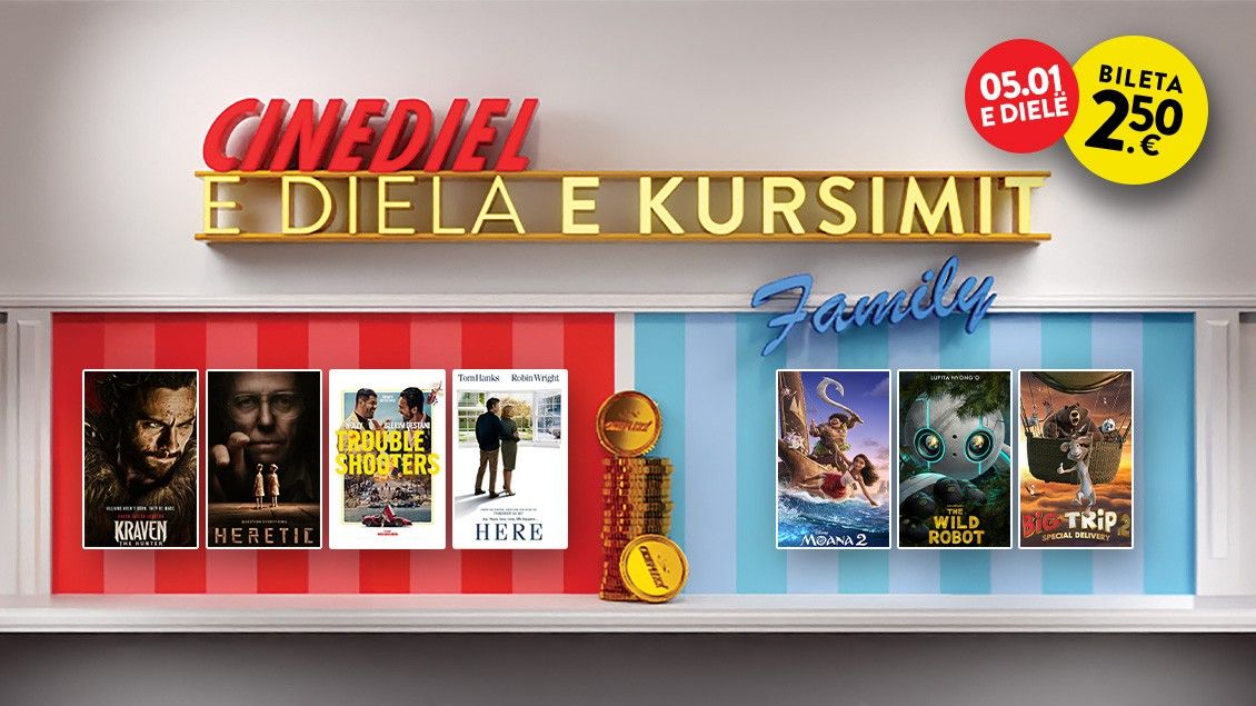 Filloni vitin 2025 me një eksperiencë ndryshe në Cineplexx ! Bashkohuni me ne në të dielën e parë të vitit dhe shijoni filma të mrekullueshëm si: Troubleshooters, Here, Heretic, dhe Kraven the Hunter, me ofertën speciale Super Saver për vetëm 2.50 euro.