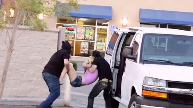 Të maskuar, ata presin në furgon derisa ajo të kalojë, e më pas veprojnë.