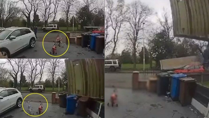 E kuptoi se ishte në rrezik dhe u largua - momenti i frikshëm kur një vinç i madh thuajse shtypi për vdekje një vajzë teksa ajo luante jashtë shtëpisë së saj në Angli