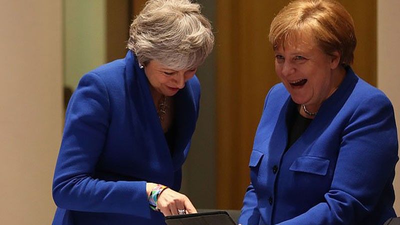 Kancelarja gjermane Angela Merkel dhe kryeministrja e Britanisë së Madhe, Theresa May, janë parë gjatë takimit të samitit të Bashkimit Evropian duke qeshur për disa momente.
