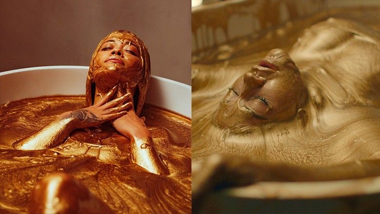 Në një prej skenave, këngëtarja shqiptare do të shfaqet mjaft atraktive dhe provokuese në një vaskë, e mbuluar e tëra me ar të lëngshëm.