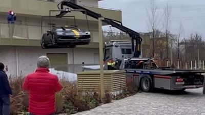 Të premten e kaluar, një vinç i dytë u angazhua për ta zbritur superveturën sërish në tokë, në një operacion që shkoi pa incidente.