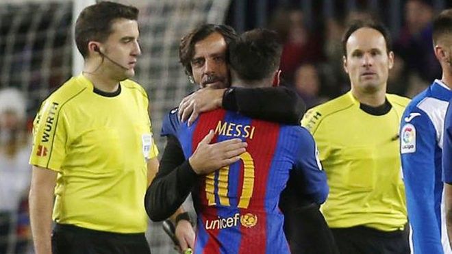 E përqafoi Messin pas ndeshjes, trajneri i Espanyolit në hall me tifozët