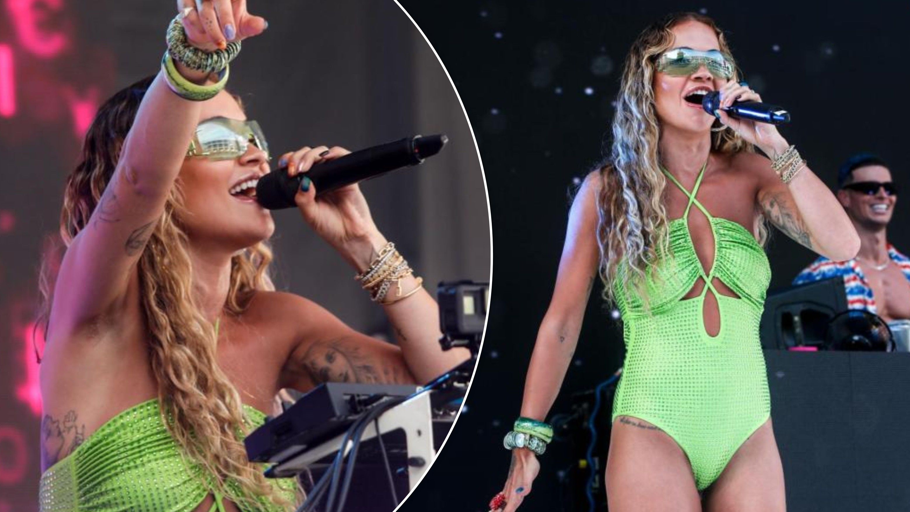 Rita Ora dukej sensacionale teksa doli në skenë për një performancë energjike në Ibiza të mërkurën (16 gusht).