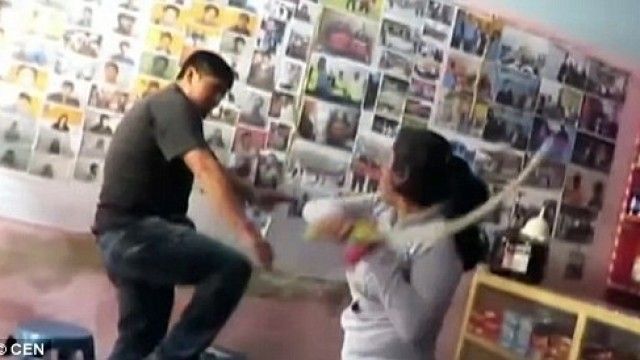 Dhe si rezultat, ajo ndoqi burrin, i cili i tha asaj se do të takonte disa shokë, por ai hyri në një hotel lokal dhe u takua me të dashurën e tij, ndërsa gruaja pas i pa ata u shkojë nga pas dhe në mënyrë demonstrative rrahu burrin me kamxhik.