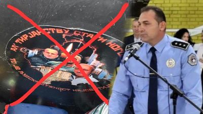 Sipas njoftimit zyrtar, gjatë kontrollit, policia iu gjeti një hartë të Republikës së Kosovës, fotografi të personave të vrarë gjatë sulmit terrorist në Banjskë në shtator të vitit të kaluar, dy thika, një sopatë dhe një dritë rotative.
