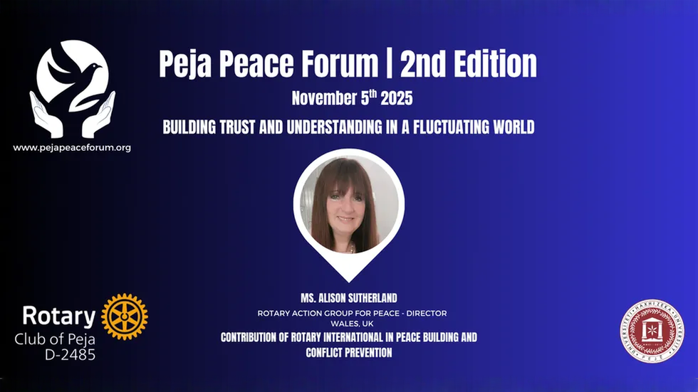 Forumi i Paqes në Pejë ka nderin të mirëpres rotarianen e devotshme dhe lideren e njohur të Paqes, Alison Sutherland, nga Wales, Mbretëria e Bashkuar.