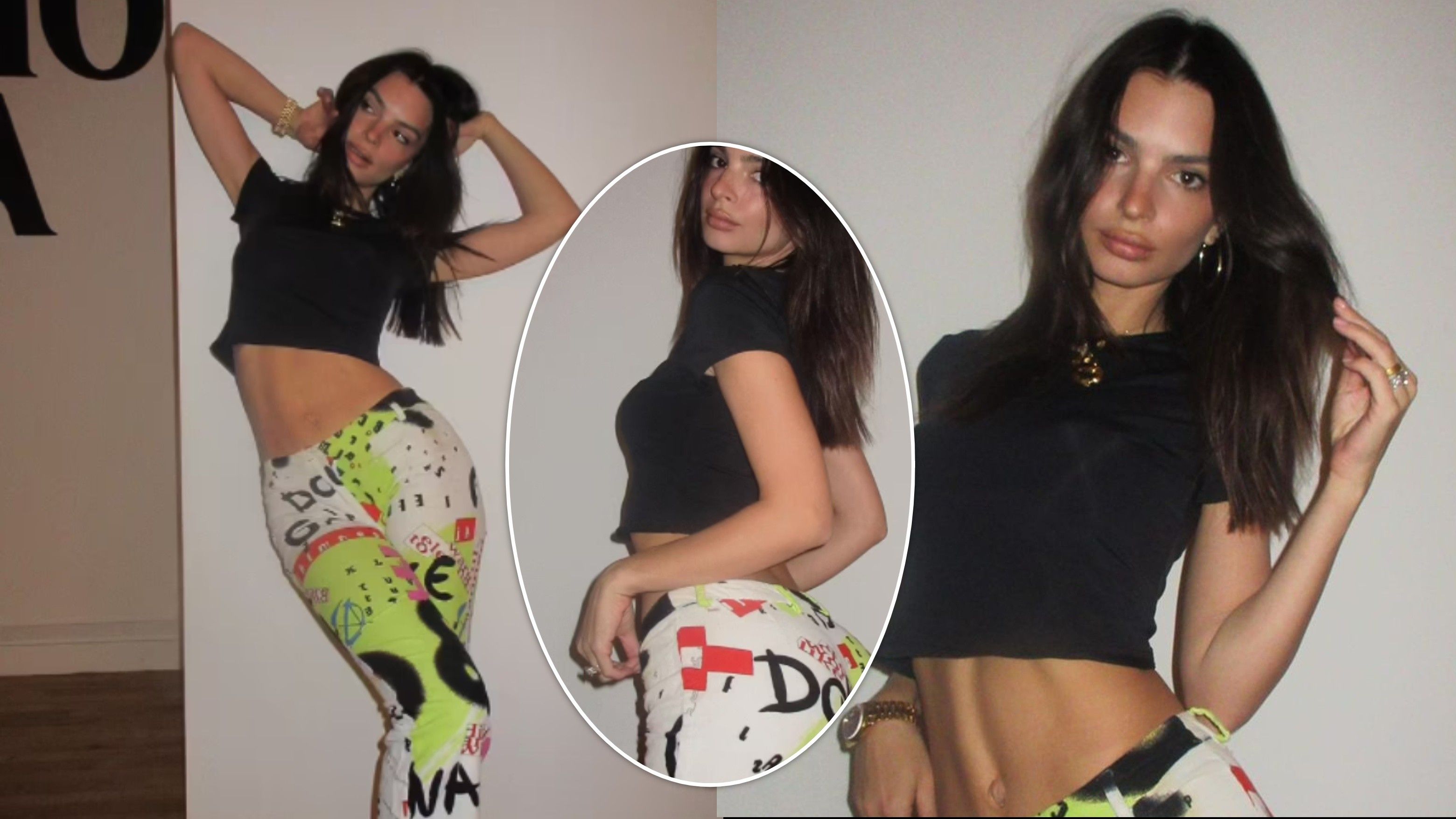 Emily Ratajkowski tregon format trupore dhe ndriçon Instagramin me një palë pantallona shumëngjyrëshe