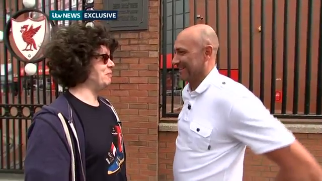 Joe, tani 35-vjeç e takoi personin që ia kishte shpëtuar jetën, përkatësisht John McMahon dhe të dy u ribashkuan para memorialit në Anfield Road. /Telegrafi/