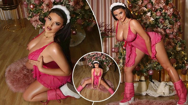 Ajo ka pozuar pranë pemës së Vitit të Ri, e veshur me këmishë nate dhe çizme të gjata ngjyrë rozë.