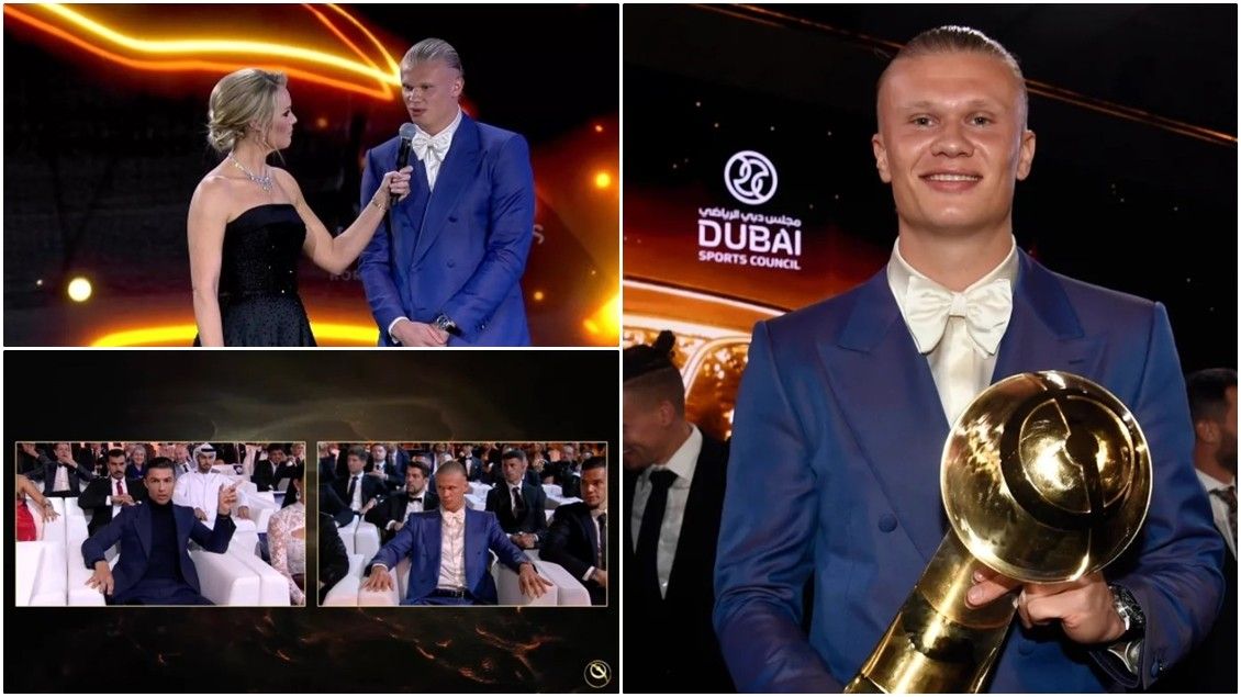 Nuk u konfirmua se kush ishte i dyti në votim, por Haaland dhe Ronaldo u shfaqën në modalitetin e ekranit të ndarë disa momente përpara se fituesi të zbulohej zyrtarisht.