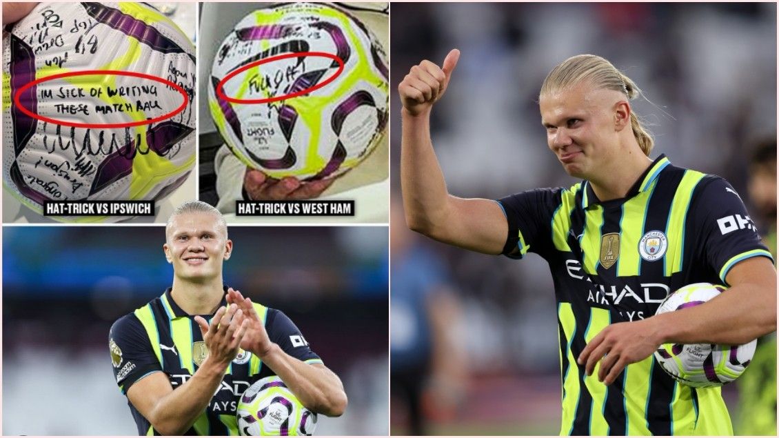 Pas një het-triku në xhiron e dytë kundër Ipsëich, dikush nga dhoma e zhveshjes së Man Cityt i shkroi Haaland: "Jam lodhur duke nënshkruar topa".Duket se i njëjti ka shkuar një hap më tej dhe kundër West Ham ai i shkroi në top: “F*ck off”.