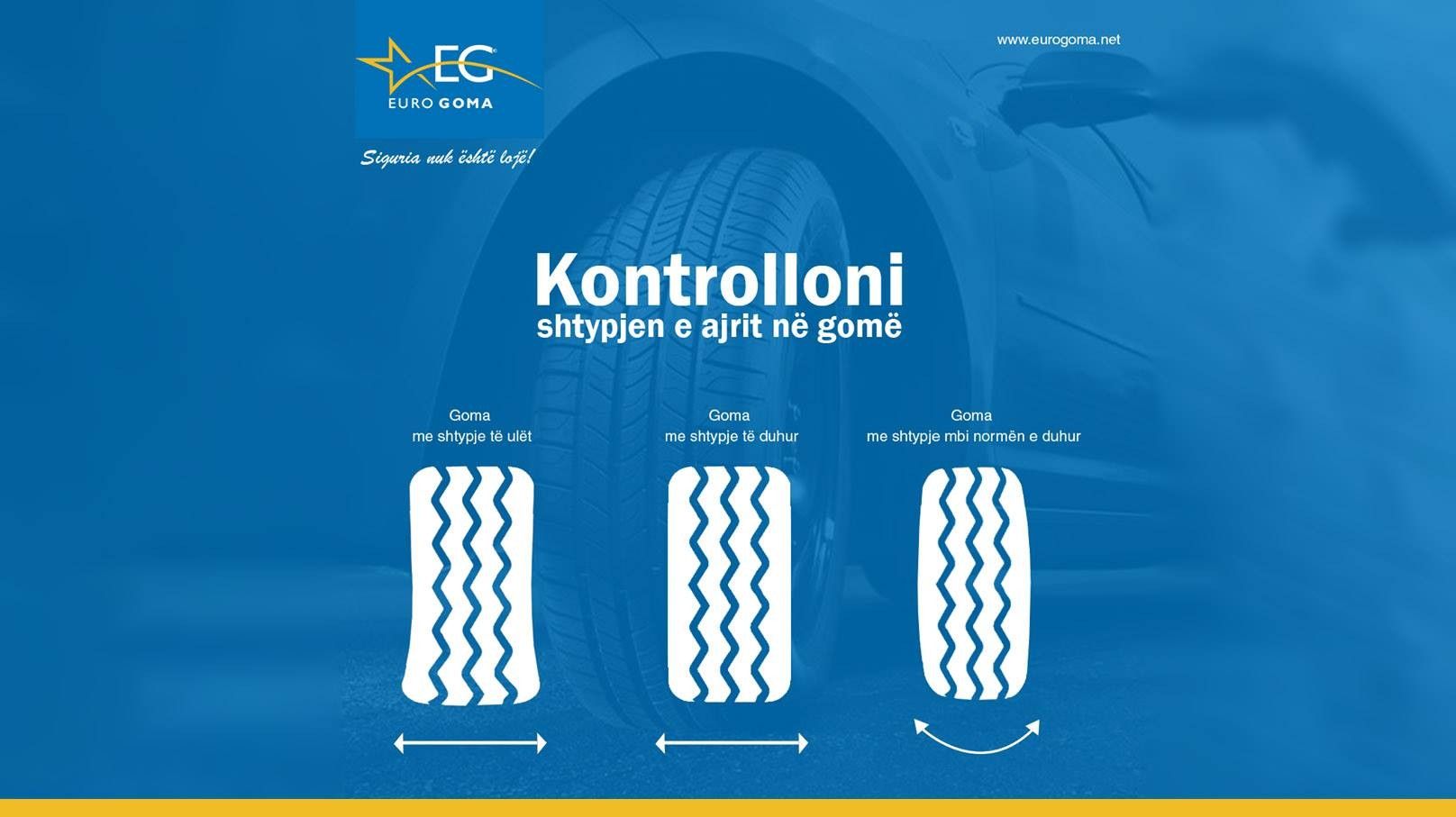 Sigurohuni që gomat tuaja të kenë presionin e duhur.Vlerën e rekomanduar për gomën tuaj e gjeni në manualin e veturës tuaj.