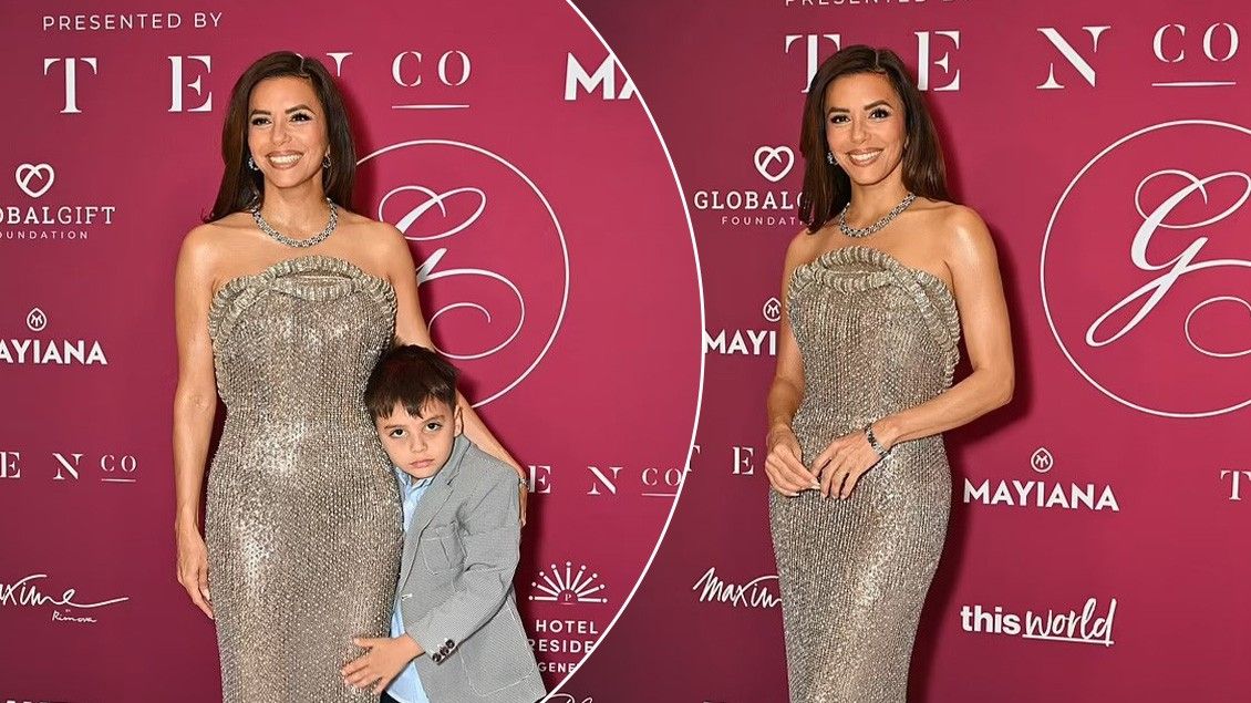 Në tapetin e kuq, Eva shoqërohej nga djali i saj gjashtëvjeçar, Santiago, të cilin e ka me bashkëshortin Jose Baston.