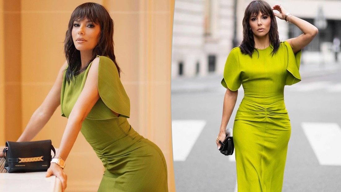 Për këtë shfaqje, Longoria kishte veshur një fustan lime me mëngë të shkurtra, të cilin e ka shoqëruar me sandale të zeza dhe një mini çantë Victoria Beckham të zezë.