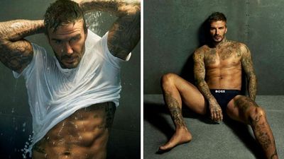 Beckham ka pozuar me të brendshme të markës "Boss", i mbështetur në një mur, ulur në një kolltuk dhe madje edhe nën dush.