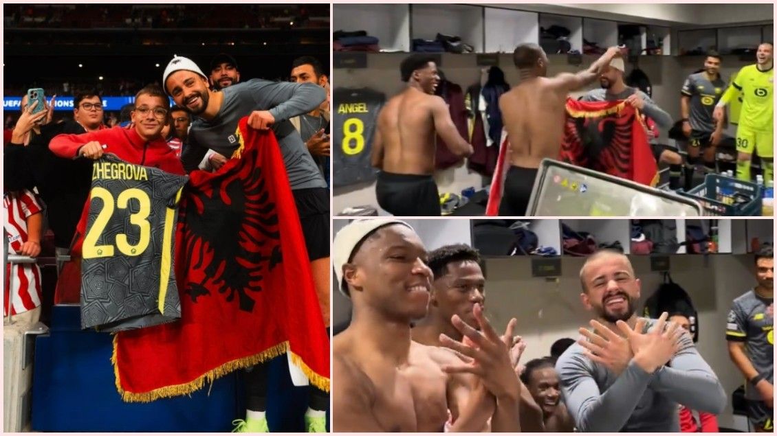 Festa e çmendur në zhveshtoren e Lille ku Zhegrova feston me bashkëlojtarët me flamur kuqezi dhe plis në kokë
